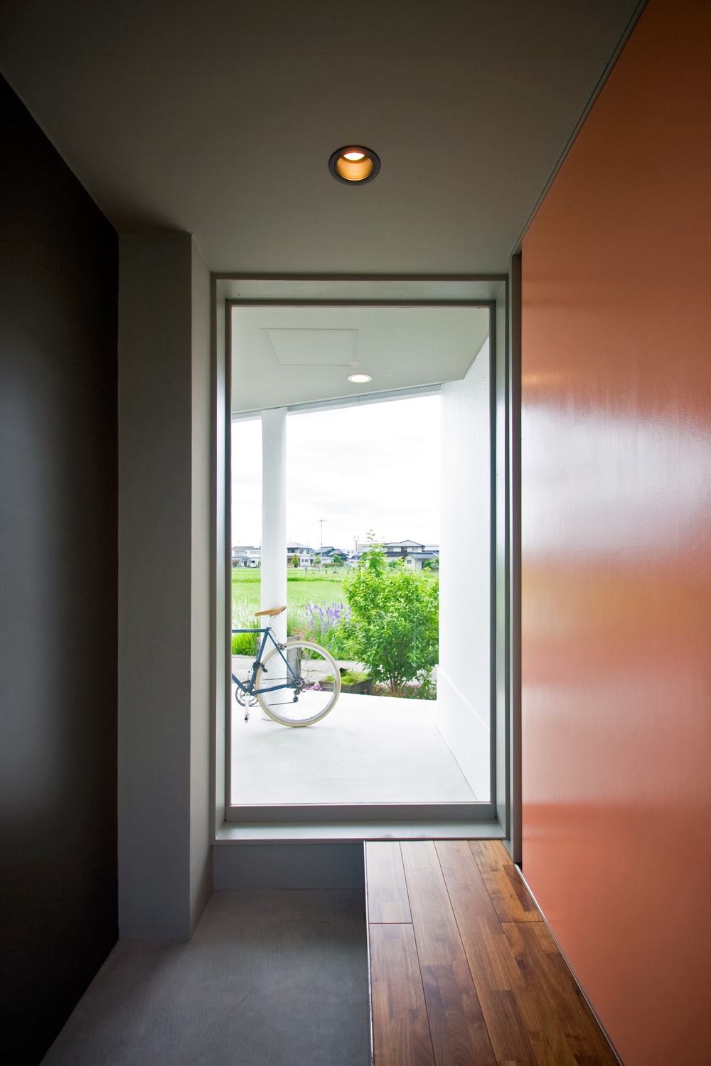 In contrast to the exterior, the gray colored peaceful atmosphere covers the inside. Sunlight is streaming from the numerous windows and performs the gentle gradation. Have minimized the number of walls that constitute the room layout so that people can freely wander around the space. When you walk along the narrow corridor, you’ll find out the ‘library’ and ‘closet’ followed by the terrace of ivy full of sunshine. On the rainy day, the wet brilliant green will fill the senses.