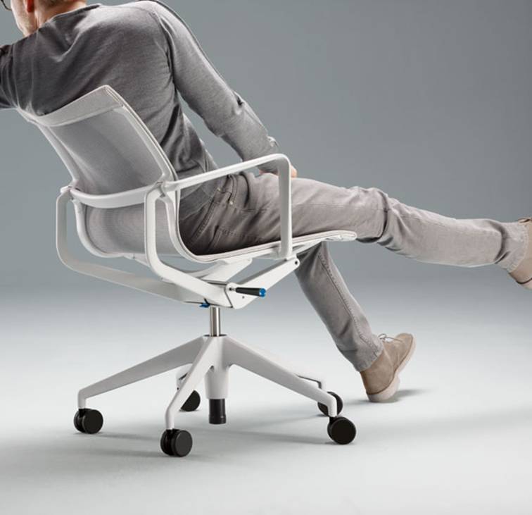La construcción de Physix parte de la idea de una carcasa de asiento continua, compuesta por un tejido tensado entre dos largueros laterales. Mediante el uso de las posibilidades que ofrecen los materiales y las técnicas de producción actuales, Alberto Meda ha compuesto una combinación de tres elementos que crean un asiento novedoso y dinámico: un bastidor flexible, una tapicería de tejido elástico y un mecanismo de estabilización.