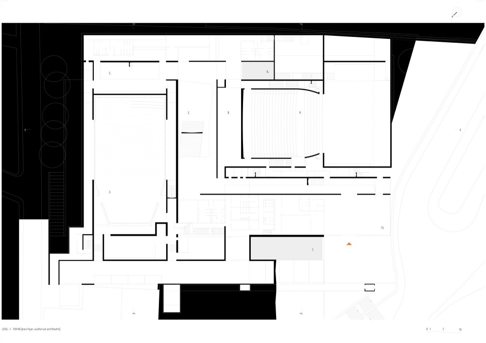 The building should be as simple as possible, playing a distinctive role as catalyst and support for artistic activities and events, and contributing to social interaction. It should have a clear, strong but discreet presence and image in the city, conveying information about its own content that can be read at different levels.