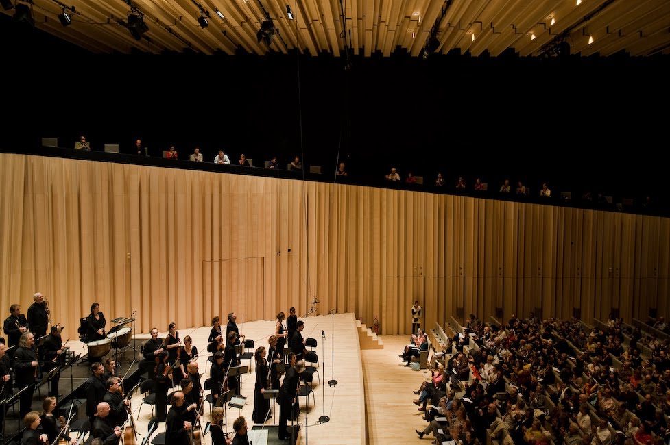 As a result, the delicate textured surfaces that diffuse the sound provide acoustic perfection and a feeling of sensory well-being for performers and audience alike.