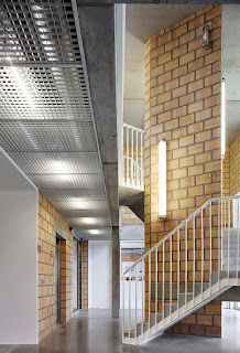 To create the space required for the additional amenities, a second storey was added to the existing flat-roofed single-storey building. A similar type of brick and bond pattern was used to create visual continuity between the old and new structures.