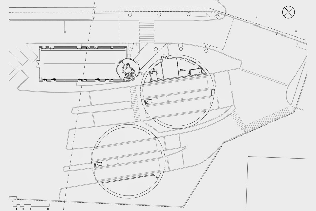 Although it uses common technical language and fittings, the building has been transformed into a unique work space, dedicated to the material it contains: the silos, the stair tour, the offices, the test center and the ground too, are all made from concrete. The material reveals much of its plastic potential. Not one element that stands out. The project is a whole, it is alive, a sort of abstraction of bodies rising from the ground and attracting each other into one unique place.