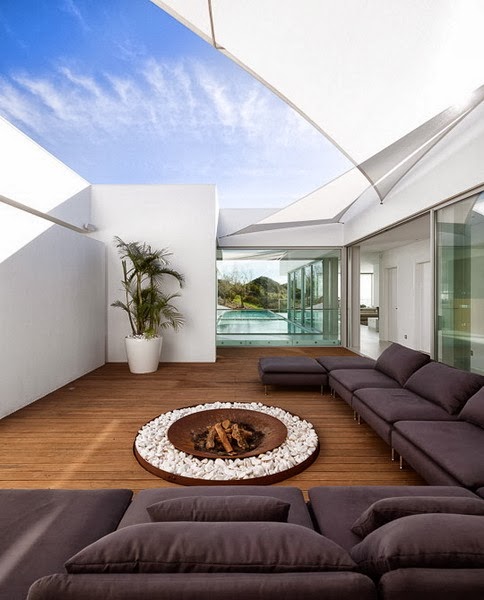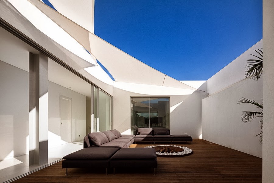 Cuatro dormitorios se encuentran en una zona privada con acceso desde un pasillo que bordea un patio central. En este patio privado la luz natural que se filtra, la creación de un espacio íntimo y deseable.
