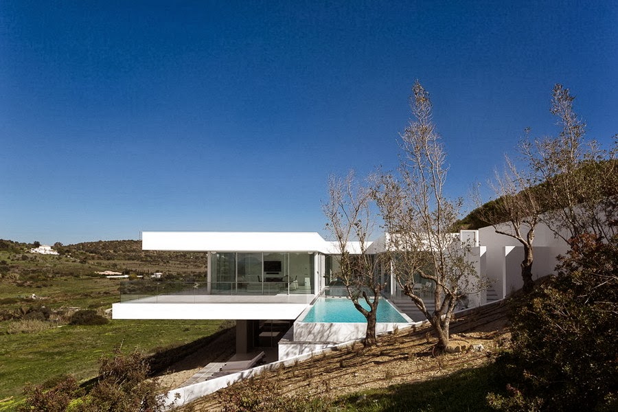 Descripción de los arquitectos. Villa Escarpa se encuentra cerca del pueblo de Praia da Luz, en el distrito de Lagos, Algarve, en el sur de Portugal.