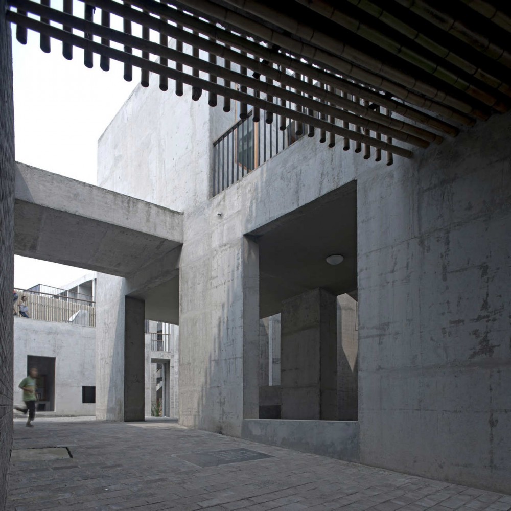 The design responds to Sichuan’s hot and humid climate. Sunshade device, natural ventilation and heat reduction are important elements considered in design. We also explore to maximize the use of local resource and craftsmanship which can be acquired. Local materials such as wood, brick and bamboo are used for windows, walls, and ceilings. The recycled bricks from earthquake are used in pavement. Cast-in-situ concrete are used for exposed structure. The construction is completely done by a local contractor. The construction cost is well controlled within the economical budget of RMB 1,500 yuan per square meter.
