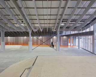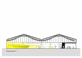 The operation takes place along a canal in St. Pierre, which is the former industrial district of Calais. It continues the urban renewal initiated by La Cité de la Dentelle (by Moatti&Rivière Architects) located a hundred meters downstream. In this bleak urban landscape, the conversion of the existing industrial hall has to be visible. The future facility must signal its presence and invite potential users, the young and curious, to enter. The high clearance at the front of the building offers increased visibility of the west gable from the surrounding area. This gable, which has been completely redesigned, will project a strong signal into the public space.